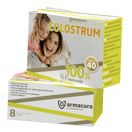 Alimento a base di colostro al 100% (primo latte vaccino, scremato, decaseinato, microfiltrato e filtrato sterile).
