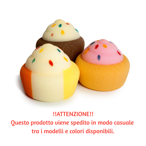 A forma di muffin nelle colorazioni arancione, marrone e multicolor sono l’accessorio perfetto per rendere il momento della doccia ancora più divertente.