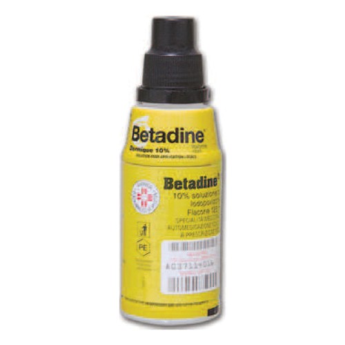 AvvertenzeSolo per uso esterno. Questo medicinale non deve essere applicato su cute gravemente lesa e su superfici estese. Non usare per trattamenti prolungati: l'uso specie se prolungato può dare origine a fenomeni di sensibilizzazione. In tal caso, il trattamento deve essere interrotto e deve essere effettuata una valutazione clinica. Particolare cautela va usata in pazienti con preesistente insufficienza renale che necessitino di regolari applicazioni di Betadine su cute lesa (vedere paragrafo 5.2). I pazienti con gozzo, noduli tiroidei o altre patologie tiroidee acute e non acute sono a rischio di sviluppare iperfunzione tiroidea (ipertiroidismo) a seguito di somministrazione di grandi quantità di iodio. In questa popolazione di pazienti, la soluzione di iodopovidone non deve essere impiegata per un periodo di tempo prolungato e su estese superfici corporee. Anche dopo la fine del trattamento bisogna ricercare i precoci sintomi di possibile ipertiroidismo e monitorare la funzione tiroidea. Non usare almeno 10 giorni prima di effettuare una scintigrafia o dopo scintigrafia con iodio radioattivo oppure nel trattamento con iodio radioattivo del carcinoma tiroideo. La popolazione pediatrica ha maggior rischio di sviluppare ipotiroidismo a seguito di applicazioni di dosi elevate di iodio. A causa della permeabilità della cute e della loro elevata sensibilità allo iodio, l’uso di iodopovidone deve essere ridotto al minimo indispensabile nei bambini. Può essere necessario un controllo della funzione tiroidea del bambino (ad esempio livelli di T4 e TSH). Qualsiasi ingestione orale di iodopovidone da parte del bambino deve essere evitata. In età pediatrica usare solo sotto stretto controllo e nei casi di effettiva necessità. L’ingestione o l’inalazione accidentale di alcuni disinfettanti può avere conseguenze gravi talvolta fatali. Evitare il contatto con gli occhi.