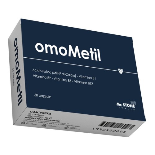 Apporta un supplemento di vitamine e minerali utili nei casi di aumentato fabbisogno degli stessi. L'acido folico, la vitamina B12 e la vitamina B6 presenti in Omometil capsule, contribuiscono al normale metabolismo dell'omocisteina.
