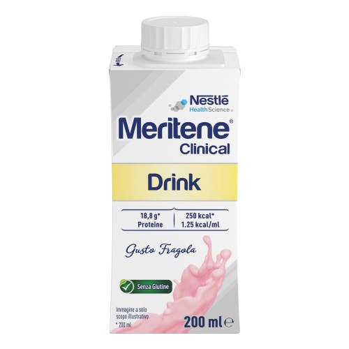 Alimento a fini medici speciali. Nutrizionalmente completo. Iperproteico. MERITENE Clinical Drink è un alimento a fini medici speciali, caratterizzato da un elevato contenuto proteico e di carboidrati. Per questo motivo è indicato per la gestione dietetica della malnutrizione calorico-proteica, anche di pazienti sarcopenici.