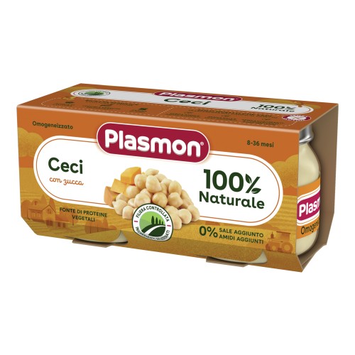 L'omogeneizzato di ceci è ideale per far assaggiare al tuo bambino i legumi e variare il gusto della pappa. L'omogeneizzato ceci con zucca plasmon consumato in combinazione con i cereali rappresenta una fonte di proteine alternativa alla carne, al pesce e al formaggio, nell'ambito di una dieta varia.