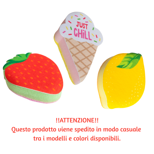 A forma di fragola, limone o gelato sono l’accessorio perfetto per rendere il momento della doccia ancora più divertente.