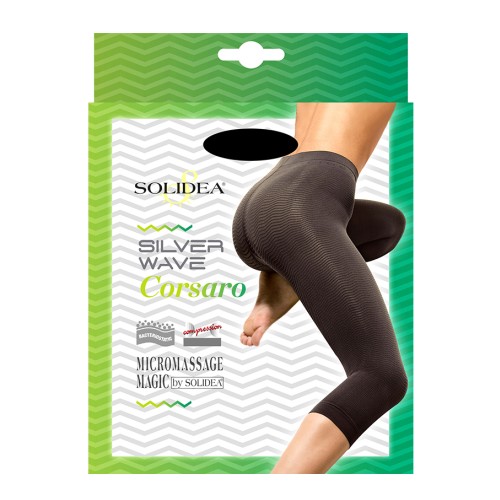 Corsaro ideale per l’attività fisica in palestra e all’aperto, morbido e confortevole, adatto ad essere indossato anche tutto il giorno. Realizzato in speciale filato batteriostatico che grazie al costante e permanente rilascio degli ioni d’argento, garantisce il mantenimento dell’equilibrio biologico della pelle, la sua naturale traspirazione, prevenendo l’insorgenza di cattivi odori. Inoltre, la speciale struttura ad onde brevettata del tessuto agisce con un delicato ed efficace micromassaggio sulla cute riattivando la microcircolazione cutanea per un trattamento efficace di cellulite e pelle “a buccia d’arancia”. Tassello igienico in cotone e cucitura piatta.Colore: nero.