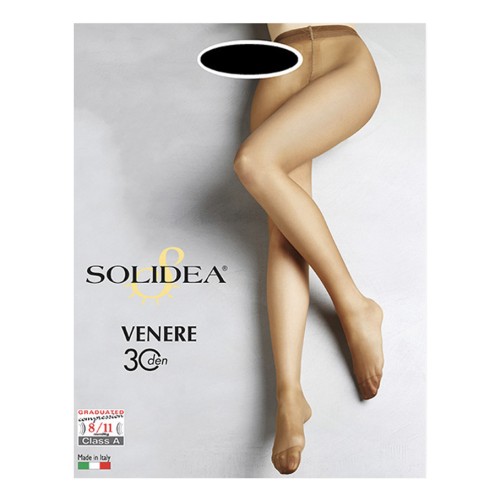 Collant 30 denari, tutto nudo, a maglia liscia. La sobria eleganza di un collant morbido e velato si abbina al benessere della compressione graduata.Morbido elastico che non segna il punto vita, tassello igienico in cotone e cucitura piatta.