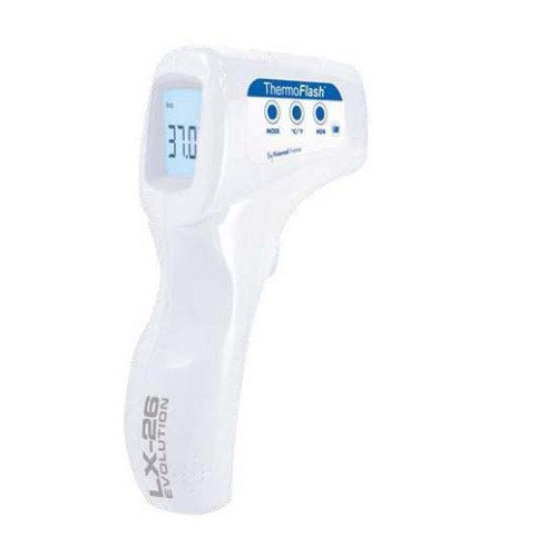 Ogni corpo, solido, liquido o gassoso, emette energia tramite radiazioni, con un'intensità che varia in base alla sua temperatura. Il termometro a infrarossi Thermoflash LX-26 Evolution permette di misurare la temperatura di una persona tramite l'energia che questa emana. La misurazione diventa possibile grazie alla sonda di temperatura esterna dell'apparecchio che analizza e registra costantemente la temperatura ambiente. In questo modo, non appena l'operatore avvicina il termometro al corpo e attiva il sensore di irraggiamento, la misurazione si effettua immediatamente tramite individuazione del calore a infrarossi emesso dal flusso sanguigno arterioso. Il risultato di questa misurazione di temperatura corporea si ottiene così senza interferenze con il calore circostante.
