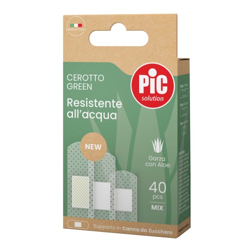 Cerotto resistente all’acqua e traspirante realizzato con un supporto di origine naturale derivante dalla canna da zucchero, e con garza imbibita di aloe vera.