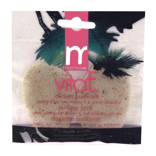 Dischetti purificanti con noccioli d'oliva, vitamina E ed estratto idratante di vite rossa. Grazie all'azione esfoliante dei granuli vetegali a base di nocciolo d'oliva, questa virtuosa combinazione possiede preziose proprietà perché protegge le cellule dai radicali liberi, idratando e migliorando l'elasticità e la morbidezza della pelle. Realizzata con processo XPand, non impoverisce i fondali marini. È un prodotto dermatologicamente testato e non contiene lattice. Prodotta con energia rinnovabile e sistema di qualità certificato. 100% Made in Italy.